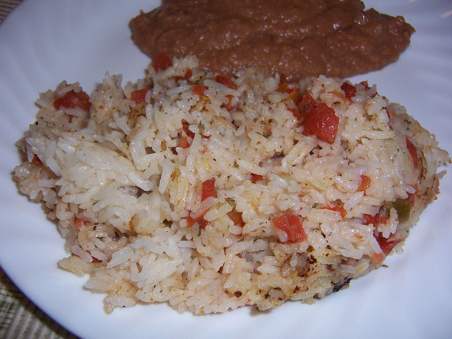 September 10, 2009 – 7:17 pmThis was an experiment that turned out very well. I’ll definitely be making this again! I wanted to see if I could just cook Mexican rice in my rice cooker, and it turned out even better than I hoped. It was very easy and tasty. We just had it with some refried beans for a light Mexican dinner tonight, but it would be great in or alongside burritos too.