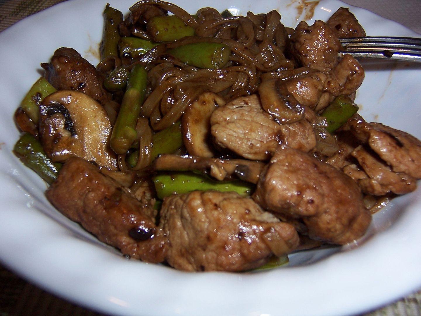 Pork, Mushroom, and Asparagus Stir-fry with Rice Noodles