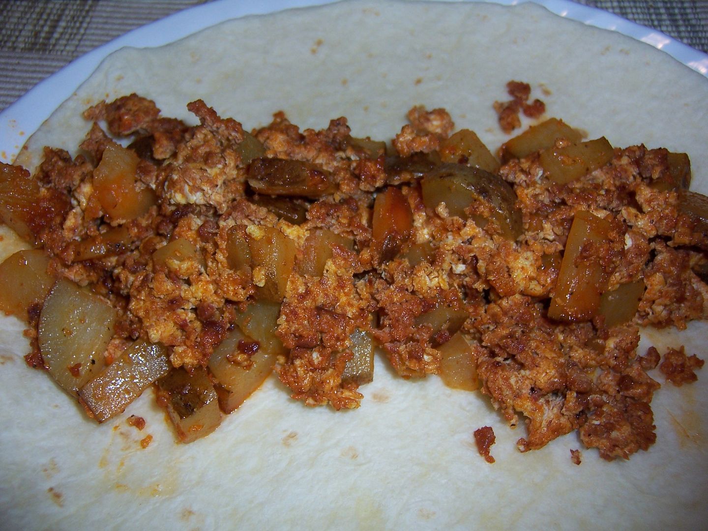 This was an experiment that we sadly didn’t get to eat due to external circumstances invading. The bite I tasted of the filling was good, but next time I’ll add more seasoning. This was some Mexican chorizo browned up in a skillet with cubed russet potatoes and eggs scrambled together with a sprinkle of salt and pepper. Next time I think I’ll add a little cayenne and cumin.