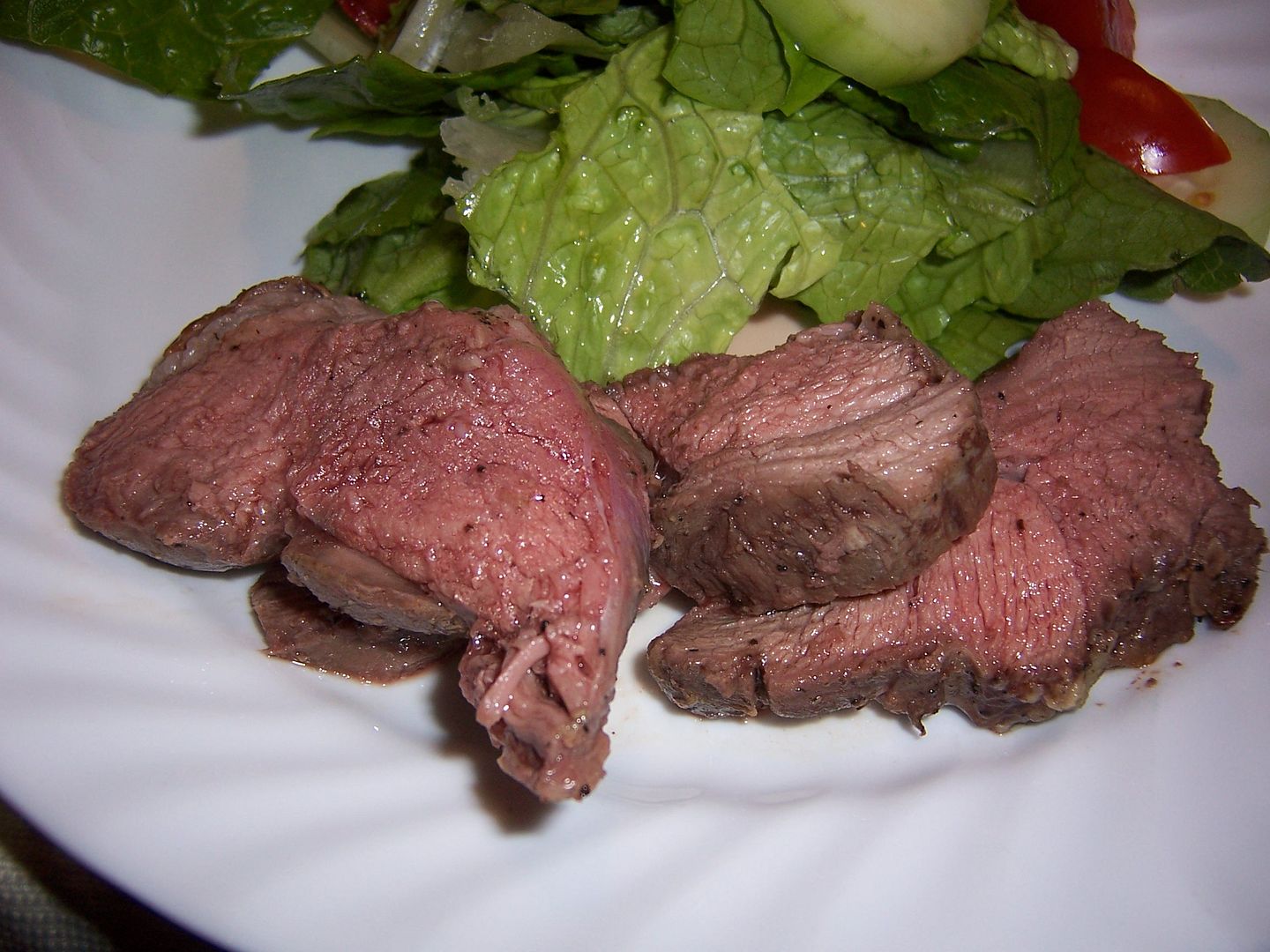 February 4, 2010 – 6:45 pmI picked up a little butterflied leg of lamb that was just two pounds – perfect for Shaun and I for dinner and some leftovers for lunch the next day. I stuck with a simple preparation – rubbing with olive oil, salt, pepper, and garlic, and broiling it for a few minutes. This would also work very well on a grill in the summer months. This turned out very nice – tender and flavorful while letting the natural flavors of the lamb to shine. Green salad was our accompaniment tonight. If you’d like the lamb more well done: after the broiling, turn the oven on to 400 degrees and let the roast cook until done to your tastes.
