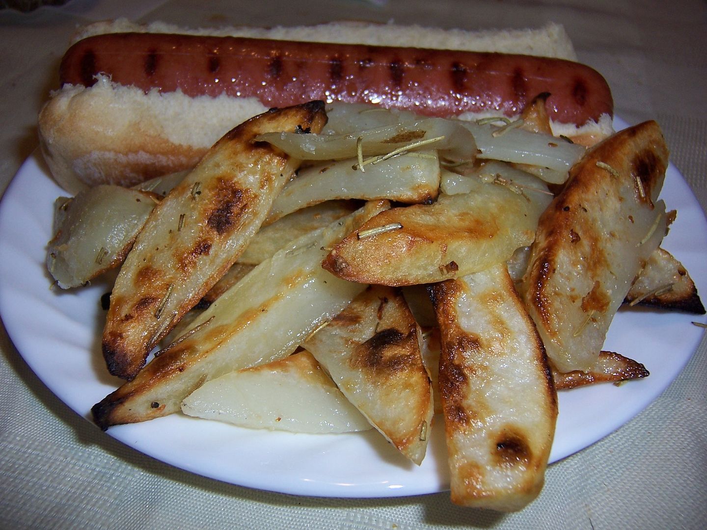 February 24, 2010 – 7:07 pmThese are a decent side dish – easy and flavorful. The inspiration for these came from Shaun describing “smashfries” from a place called Smashburger in Grand Junction. Mine are a sort of thin steak fry, and I’ve gone the oven route for ease and saving of some calories 🙂 The method is partially borrowed from Cooks Illustrated via RecipeZaar, and partially from this recipe at Jenn’s Bread+Butter. I’d definitely go with olive oil next time, but I somehow seem to be out 😛 They just didn’t quite crisp up the way we’d like either, so I might have to try real frying.