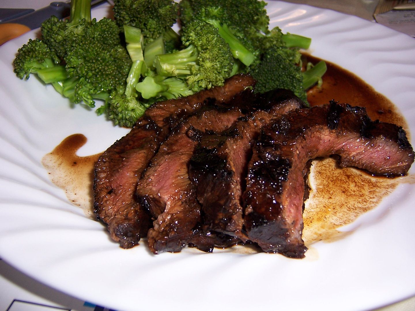 This is a flavorful steak that is easy to prepare. The marinating takes some time (I did mine overnight), but it’s definitely worth it! I used a thin flat iron steak, so mine cooked up faster. I’ve paraphrased the recipe as I made it below. I served this with some steamed broccoli.