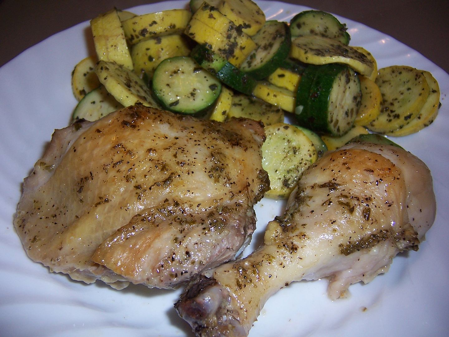 May 28, 2010 – 5:21 pmYet another take-off from an Everyday Food: Great Food Fast recipe. This was a very tasty take on chicken with some traditional Tuscan flavors. The fresh lemon juice lent a nice bright touch. I only had time to marinate it for about 30 minutes tonight, but longer would be even better, as the flavor would sink more into the meat. I served this with some zucchini and yellow squash sauteed in olive oil with some garlic, basil, oregano, salt, and pepper. Yum!