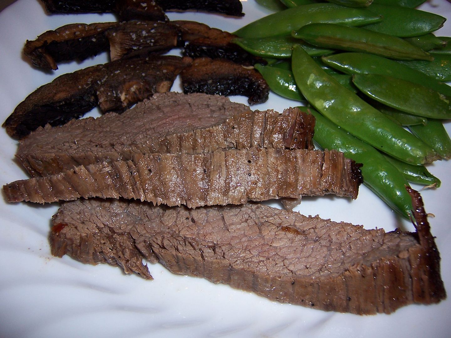 June 7, 2010 – 6:45 pmYet another recipe inspired byEveryday Food: Great Food Fast. We’re coming to the end of the ones we marked, so new cookbooks o’ the month or so coming soon 😛 The flavors in the marinade were hardly noticeable, but any longer and the lime juice would have started to make the meat mealy, so I’m not quite sure where to go with this one. I think it’ll just end up it the “not bad, but not doing again” pile. Oh well. I served this with some roasted portabella mushroom slices and steamed snap peas.