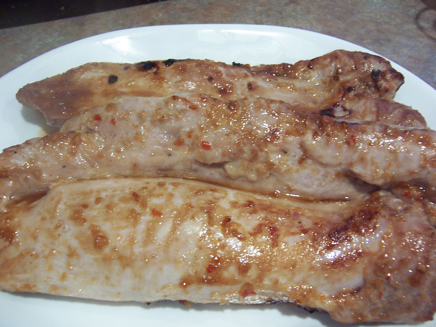 Place under the broiler and cook for 5 minutes. Pull the pan out and brush the pork with about 1/3 of the basting mixture. Return under the broiler and cook for another 5 minutes. Pull the pan out and flip the pork tenderloins over. Brush with another 1/3 of the bating mixture and return under the broiler to cook for a final 5 minutes. Put the remaining 1/3 of the sauce in the microwave for 2 minutes to boil and reduce.