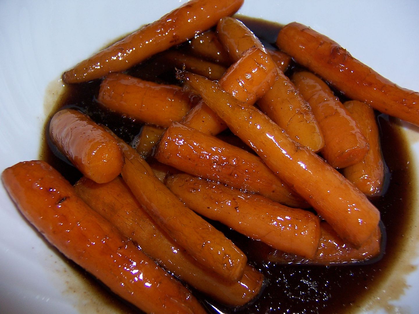July 8, 2010 – 5:03 pmThis recipe is via Ree, of The Pioneer Woman. I had a half pound of fresh baby carrots from last week’s CSA box to use, and this was a good recipe to use ’em up. I scaled way down, of course – I only used about 1 tbsp of butter total, and about 2 tbsp each of whiskey and brown sugar. This was a tasty side that I will definitely make again, though likely only for special occasions since the glaze is quite rich.