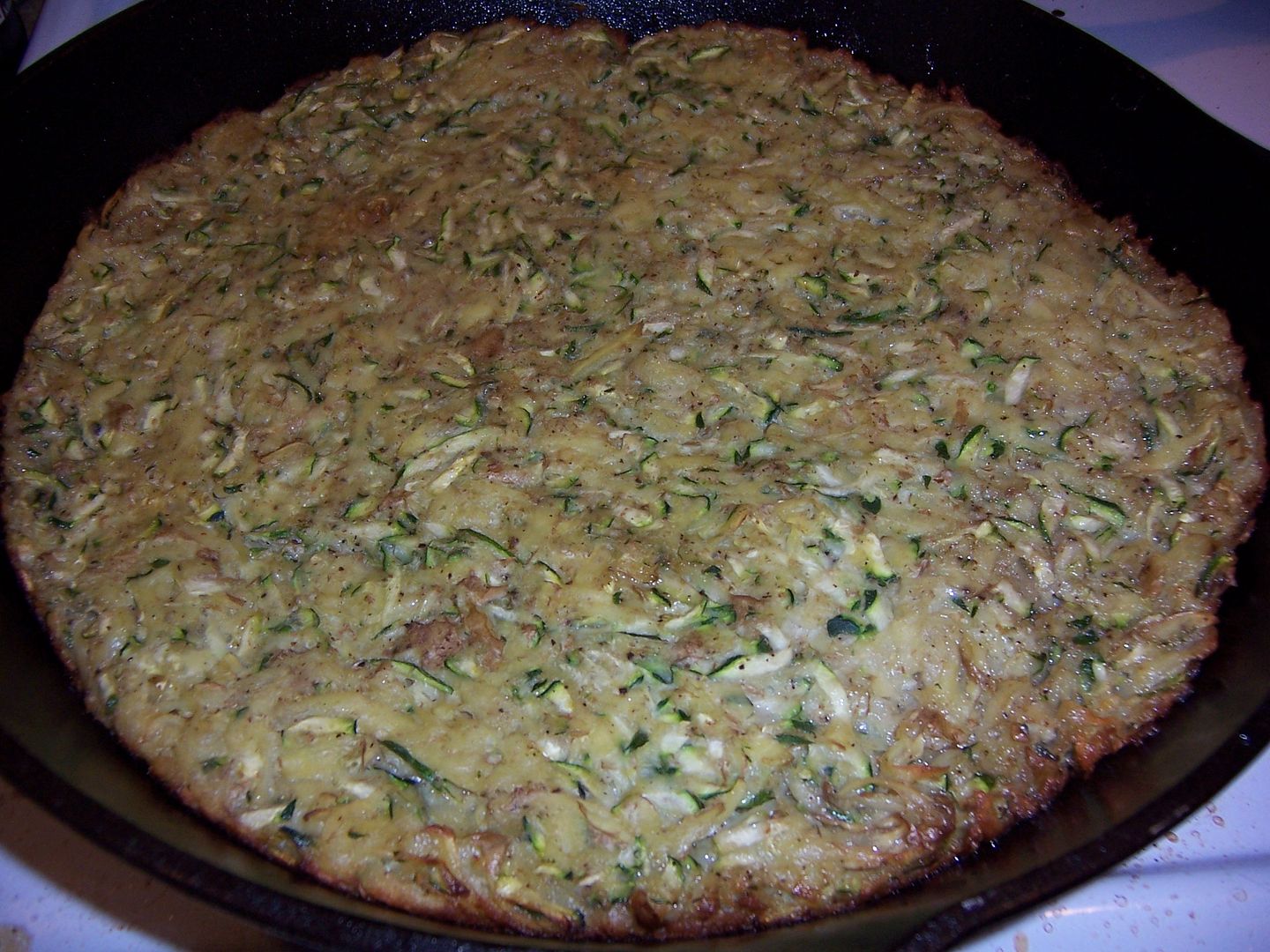 August 15, 2010 – 5:46 pmThis was a great way to use up some of the abundance of summer squash and potatoes that I’m getting in my CSA boxes. I used Raven Zucchini (basically your typical zucchini) and yellow potatoes this time, but it would work great with other summer squash and/or russet potatoes too. These could be shaped into little patties and pan fried, but I was feeling lazy and made just one big one. I wasn’t paying attention and slightly burned the butter, but this was still good.