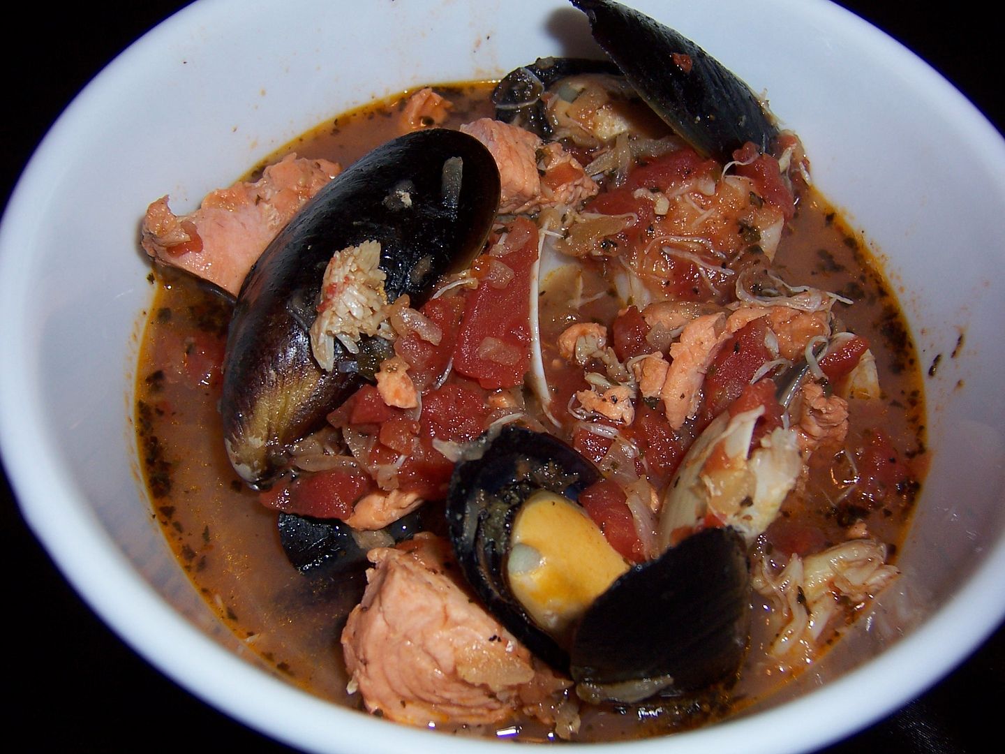 October 31, 2010 – 6:23 pmInspired by a good bowl of cioppino at Anthony’s in Everett and several recipes online (i.e. Cooking Light, Allrecipes, Elise’s Simply Recipes, and Giada of the Food Network), I’ve made my own version of cioppino, filled with great local seafood. I love living near the ocean 😀
