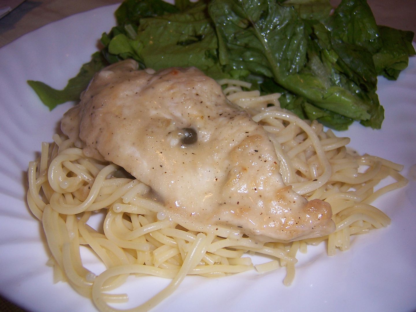 October 7, 2010 – 7:00 pmMy take on chicken piccata was dinner tonight. The pasta was a real treat as we’re still trying to keep our refined carb intake down. Yum!