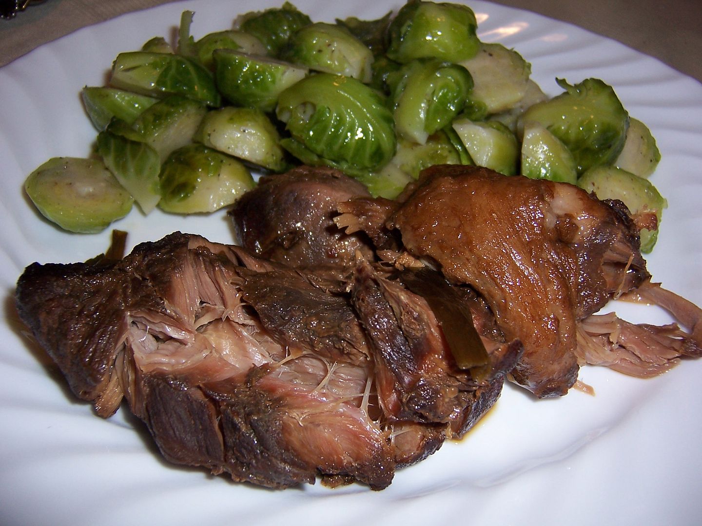 October 20, 2010 – 6:17 pmThis recipe comes from my local Central Market. They often have recipes near their weekly specials, and this one was a real winner! The only thing I changed was using about 1/4 tsp of dried red pepper flakes instead of whole dried chiles, as I could not find my little stash of them. I made some quick braised brussels sprouts to go with the meat.