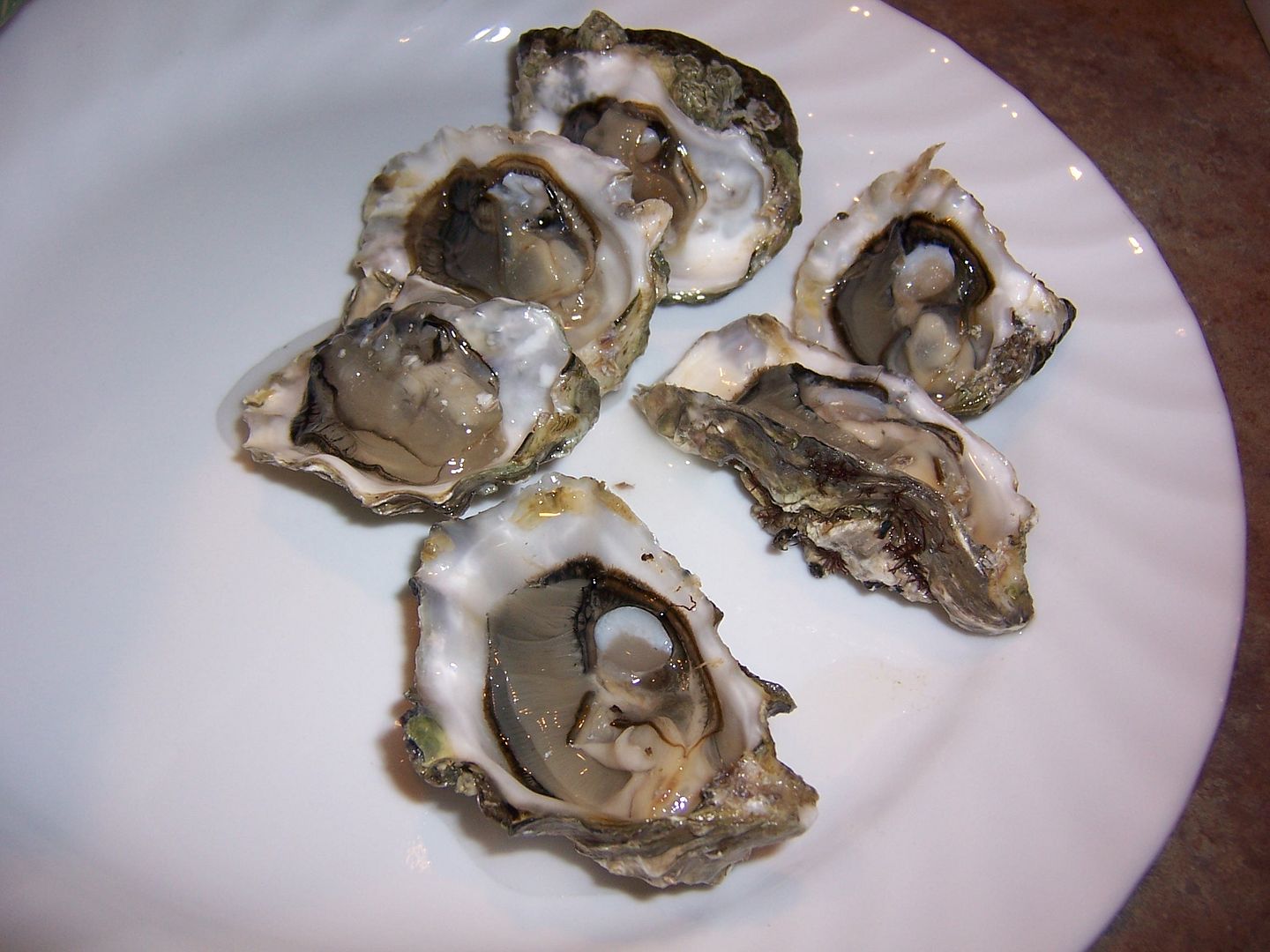 October 25, 2010 – 6:07 pmThe other part of my treat yesterday for meeting my first weight loss goal was a half dozen Quilcene oysters. These were a little harder to shuck, as barnacles had stuck decent sized rocks to a couple of them, but I did quite well and didn’t lose too much of the liquor. I think next time I’ll promote myself to one of the more delicate and harder to shuck oysters in my quest. 🙂