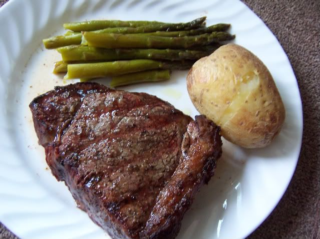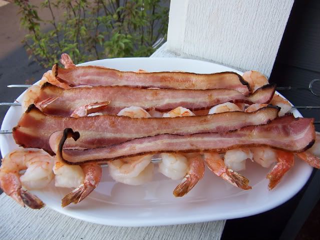 September 18, 2008 – 6:40 amYes, I’m making up words 😛 We had a very nice dinner at home last night to celebrate one year in our new home. We had sirloin steak, grilled asparagus, baked white rose potatoes, and broiled shrimp and bacon skewers. I usually make individual bacon wrapped shrimp for Christmas Eve, and this is a lazy easier spin on that. 😉