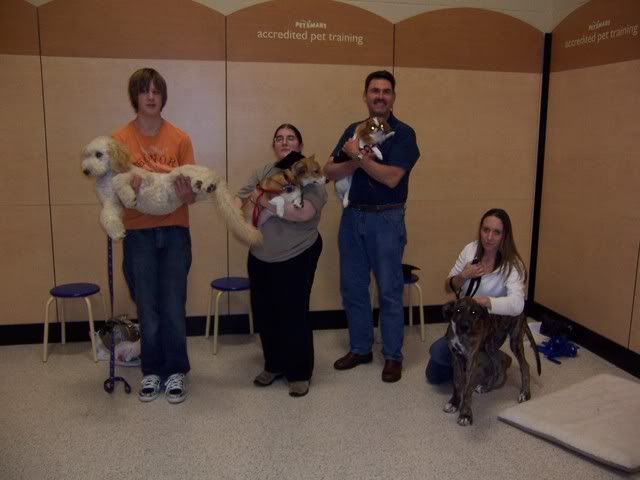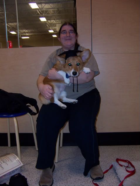 September 22, 2008 – 7:11 amIt was a rainy and chilly weekend ushering in the first day of fall. It was another Emma focused weekend, as the poor thing is having some more gut issues, but she was feeling up to going to her last day of puppy kindergarten. It was a review day, and she did great. Then we got a certificate of completion, a gourmet dog cookie, a little goodie bag with some new toys, a picture with a cute graduation hat (Emma was not the biggest fan of this 😉 ) and some quality play time. Emma loves to play with other dogs, and she became good friends with Annabelle, a goldendoodle in the class. I’m sure she’ll miss getting to play with her.