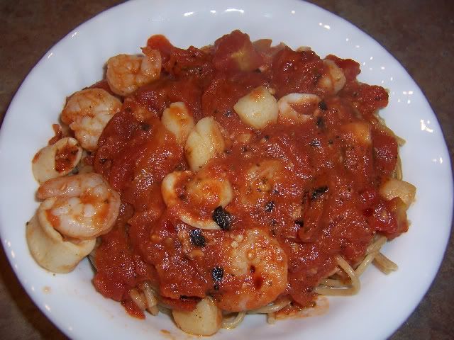 1 lb seafood blend (I used Trader Joe’s, which contains about equal parts shrimp, bay scallops, and calamari rings), defrosted if necessary