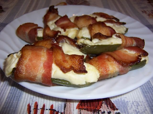 March 1, 2009 – 6:18 pmThese are straight from Ree at The Pioneer Woman. They’re incredibly tasty. I usually scrape out all the seeds and membrane from the peppers, which makes them pretty mild, but if you want more of a spicy hit, just leave in some of the membrane and seeds. Make sure that you wear gloves when you’re working with the hot peppers, otherwise the capsaicin in the essential oils absorbed into your hands could lead to some unpleasantness later on.