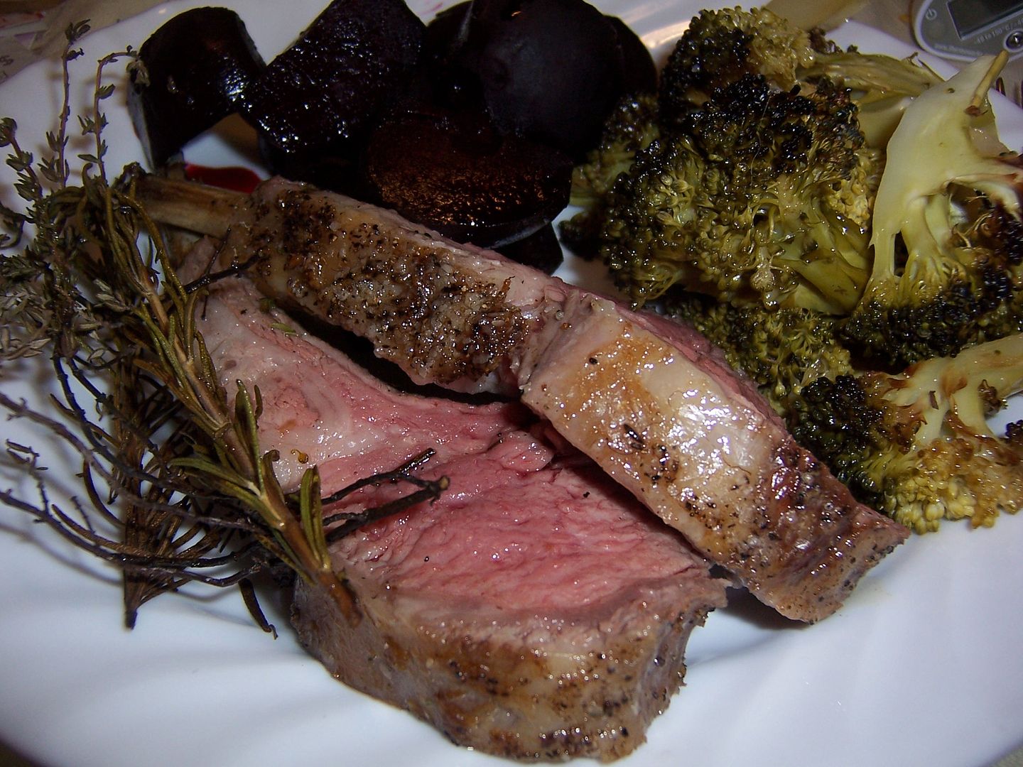 Rosemary Rack of Lamb with roasted beets and broccoli