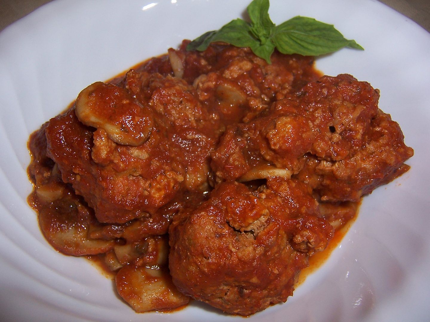 Turkey Meatballs Simmered in Tomato Sauce. As promised, this time I added more mushrooms, which was nice 🙂