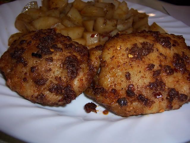 January 8, 2009 – 6:57 pmThis recipe is from Dragon’s Kitchen. She uses the spice rub with classic Portuguese flavors on chicken wings and broils them, but I substituted chicken thighs and baked them over some cubed potatoes to make a full dinner of it. We liked this a great deal, but found the salt to be overwhelming, perhaps my kosher salt has finer grains than hers, so next time I’ll be cutting it down to 1 tsp instead of 1 tbsp, and that’s how I have it written below.
